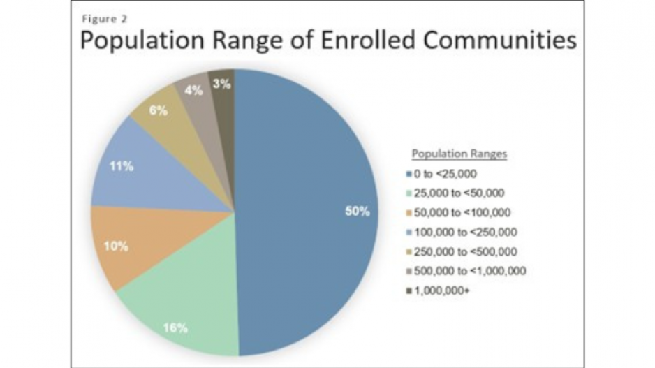 The network’s reach into smaller towns and rural areas has been particularly noteworthy. Nearly half (49%) of enrolled communities have populations of fewer than 25,000 residents, indicating that the principles of age-friendly planning are not limited to large metropolitan areas. An additional 16% of the communities have populations between 25,000 and 50,000, while the remaining 35% include mid-sized and large municipalities. This distribution demonstrates that communities of all sizes are invested in and can create built and social environments that support older adults.