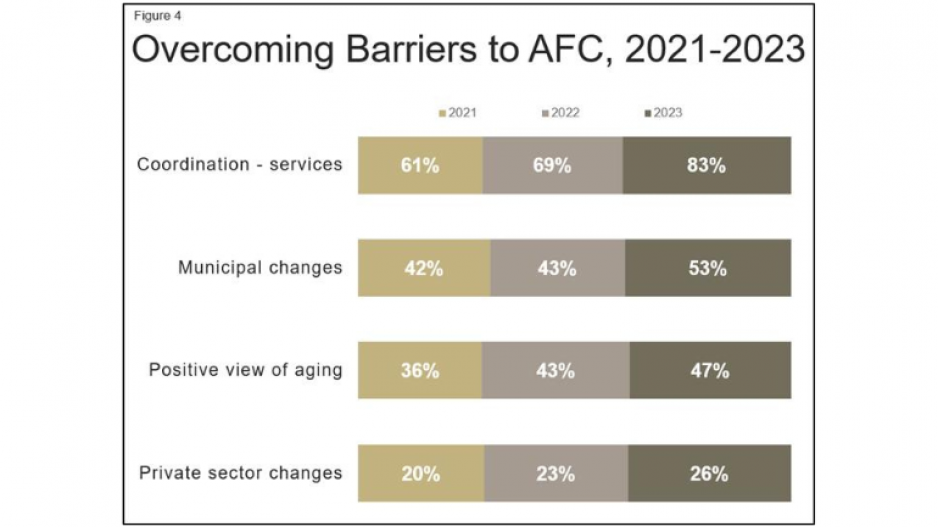 Local policy shifts are a core goal of age-friendly work, as they create long-term sustainability for community improvements. For example, municipalities have adopted policies to make public spaces more accessible, increase housing options for older adults, and improve pedestrian safety. These policy changes ensure communities are better equipped to support their older populations in a proactive, inclusive manner. The fact that nearly half the surveyed communities reported these changes underscores the far-reaching influence of age-friendly initiatives on municipal governance.