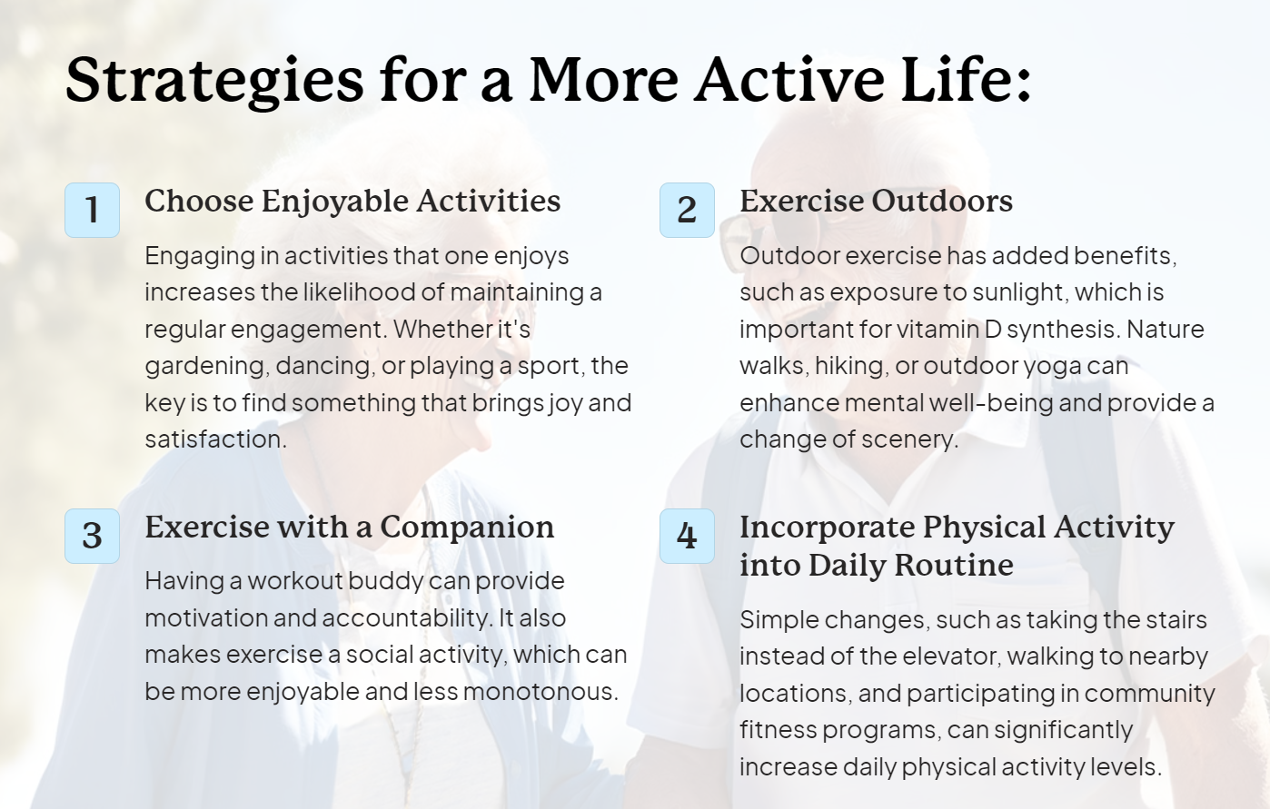 In other developed countries, older adults also enjoy significant leisure time, but the amount and nature of this time can vary. For instance, in Scandinavian countries, the strong social support systems and emphasis on work-life balance allow older adults to retire earlier and engage in recreational activities. Eurostat recently reported that older adults in countries like Sweden and Denmark spend around 4 to 5 hours daily on leisure activities (e.g., brisk walking, ball games, jogging, cycling, and swimming).